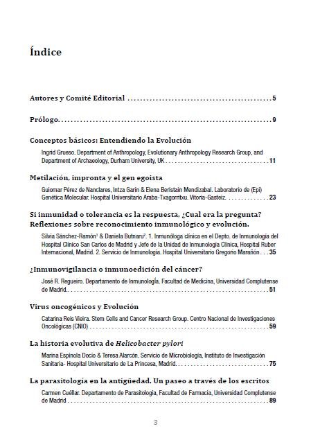 Ā Basic concepts: Understanding evolution Ingrid Grueso Ā Ā Methylation, imprinting and the selfish gene Guiomar PĆ©rez de Nanclares, Intza Garin & Elena Beristain Mendizabal Ā Ā Silvia SĆ”nchez-Ramón1 & Daniela Butnaru Ā Ā Immunosurveillance or immunoediting of cancer? JosĆ© R. Regueiro Ā Catarina Reis Vieira Ā Evolutionary history ofĀ Helicobacter pylori Ā Marina EspĆnola Docio & Teresa Alarcón Ā Parasitology in antiquity. A walk through the writings Ā Carmen CuĆ©llar Ā Ā Carmen CuĆ©llar Ā Fermented foods: Can they also obtain the postulated effects of probiotics? Ā Alvaro Daschner Ā Pigmentation of the skin and evolution Ā Mónica MartĆnez GarcĆa Ā Caries and periodontal disease: an evolutionary view JosĆ© Ignacio Zalba Elizari |